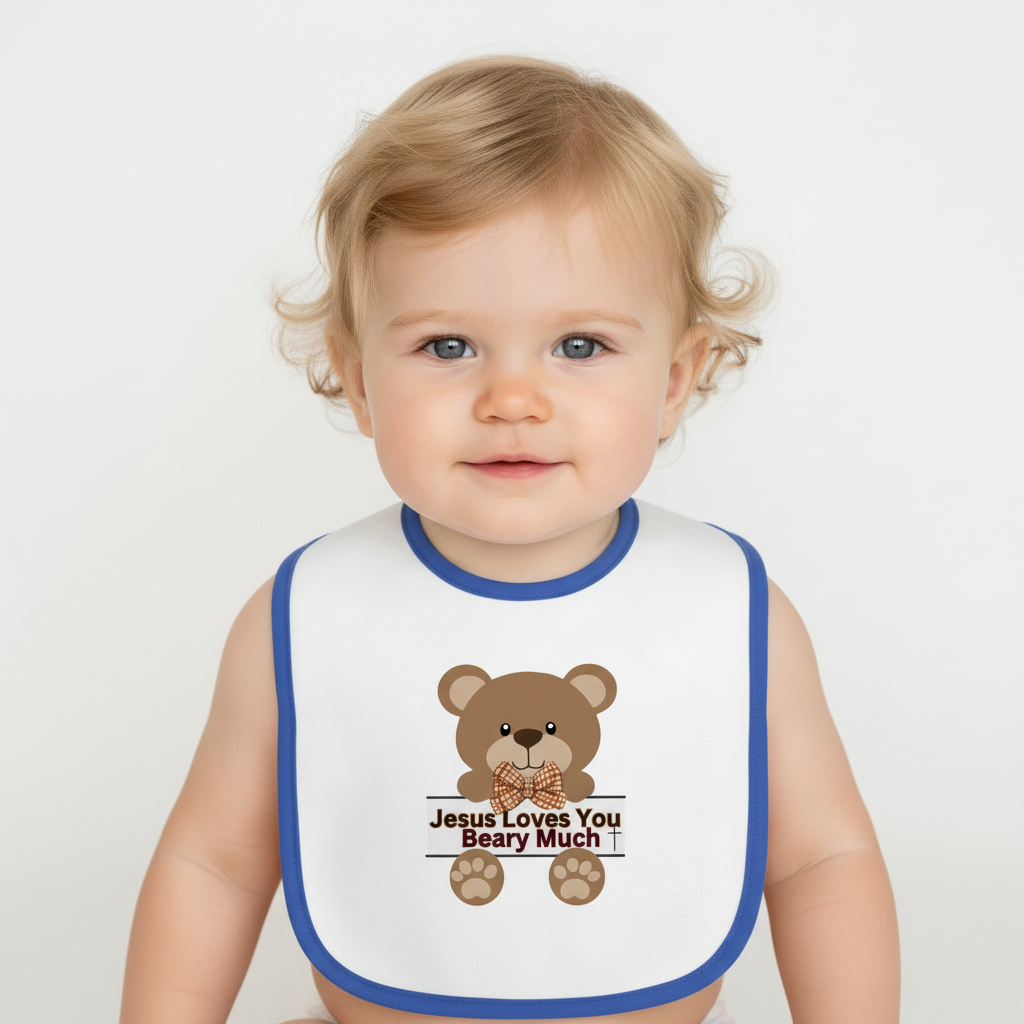 Mealtimes just became more fun with these personalized baby bibs. Featuring a 100% Ring-spun Cotton fabric for delicate softness, an original Velcro® closure for a secure fit during meals, they are as adorable as they are comfy. Plus, the contrast self-fabric binding makes for a seamless look. With an 8” x 9” size, placing your own baby bib pattern makes this product a mom & pop favorite.