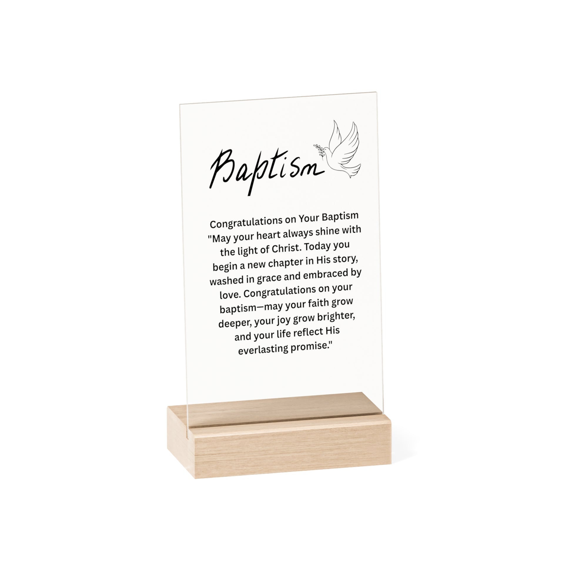 Baptism Acrylic Sign with Wooden Stand — Inspirational Christening Keepsake Plaque