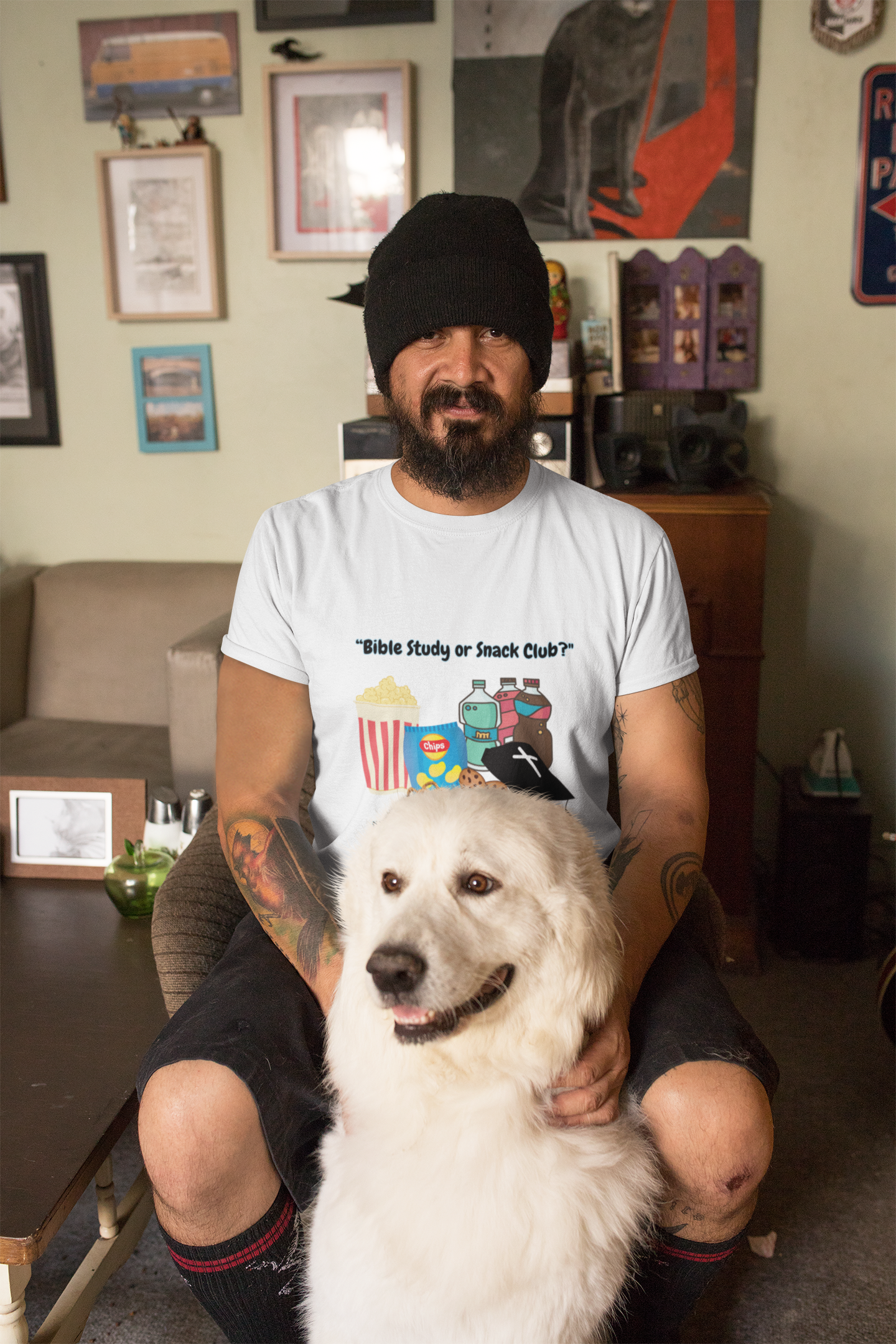 Bible Study Snack Club Tee, Funny T-Shirt, Unisex Short Sleeve, Gift for Christians, Church Humor, Casual Wear