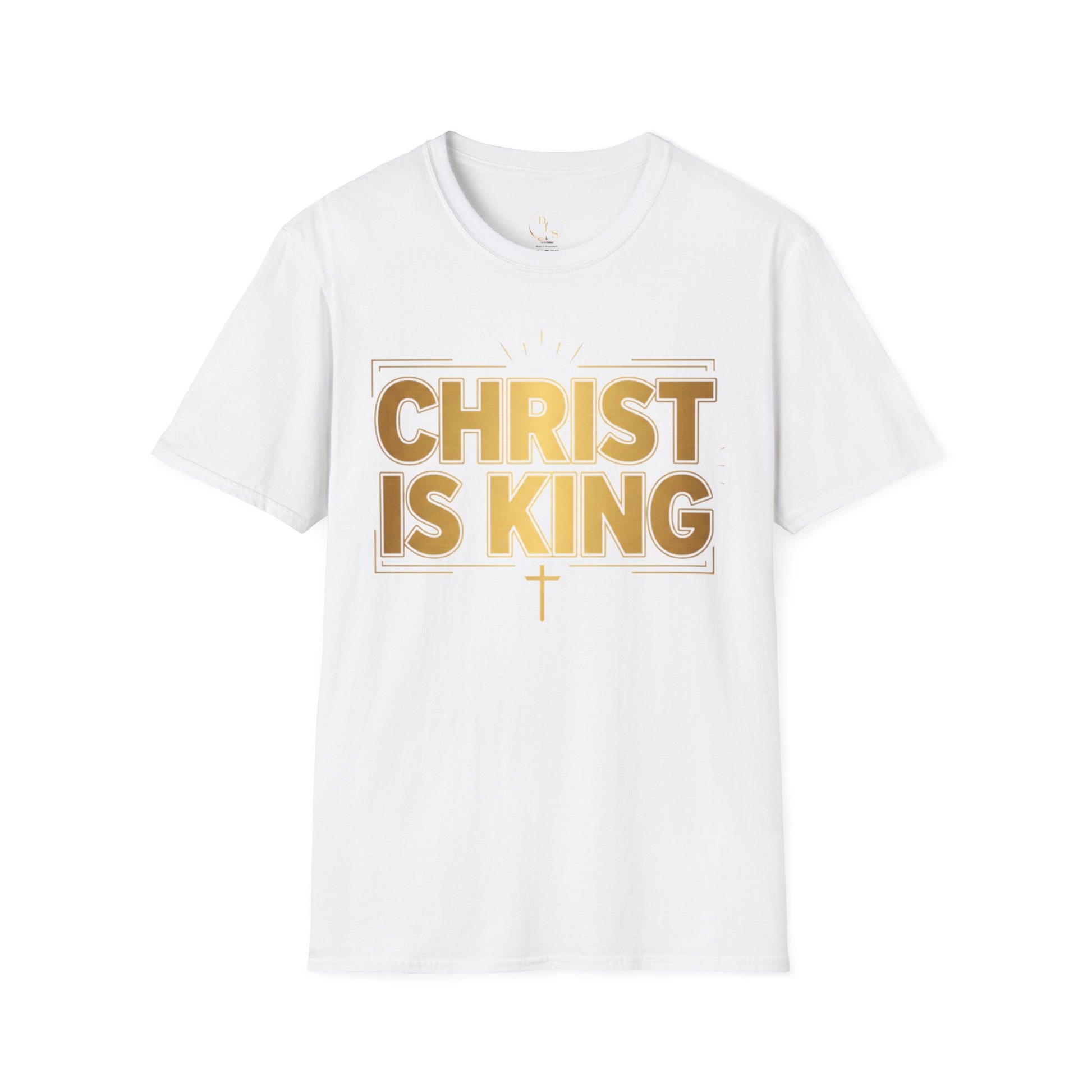 Soft, breathable tee that carries a quiet, confident faith-forward message. The white crewneck feels light against the skin, while the bold gold “CHRIST IS KING” print sits framed on the chest like a statement of worship you can wear every day. It layers easily under a jacket or stands alone during warm worship nights, volunteer shifts, or Sunday services. The subtle cross detail beneath the block letters keeps the design reverent and modern — familiar to long-time churchgoers and approachable for those newly exploring faith. Wear it to small group meetups, outreach events, or casual family gatherings when you want your shirt to speak with conviction but without shouting.