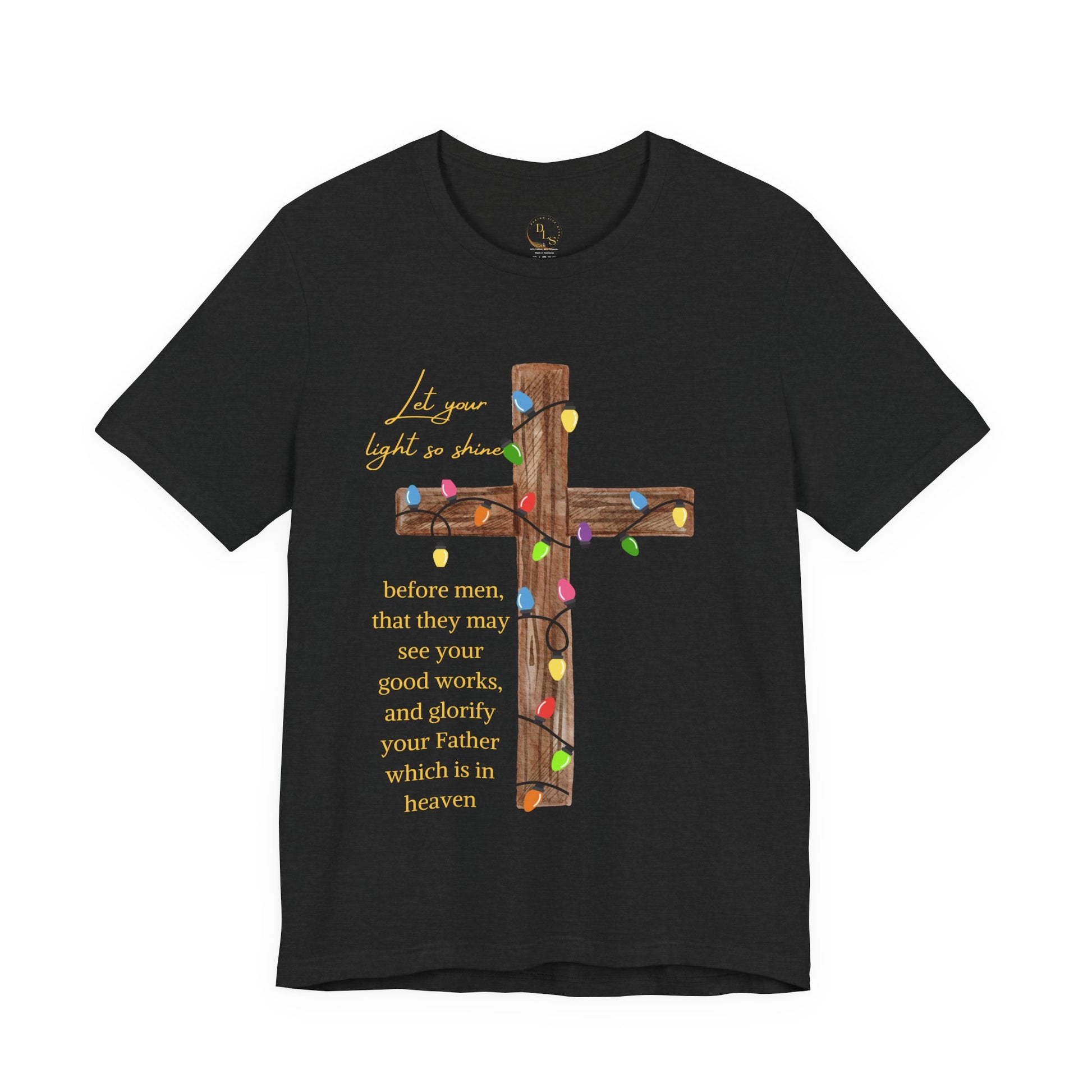 Christmas Christian Cross, let your light shine before men. T Shirt