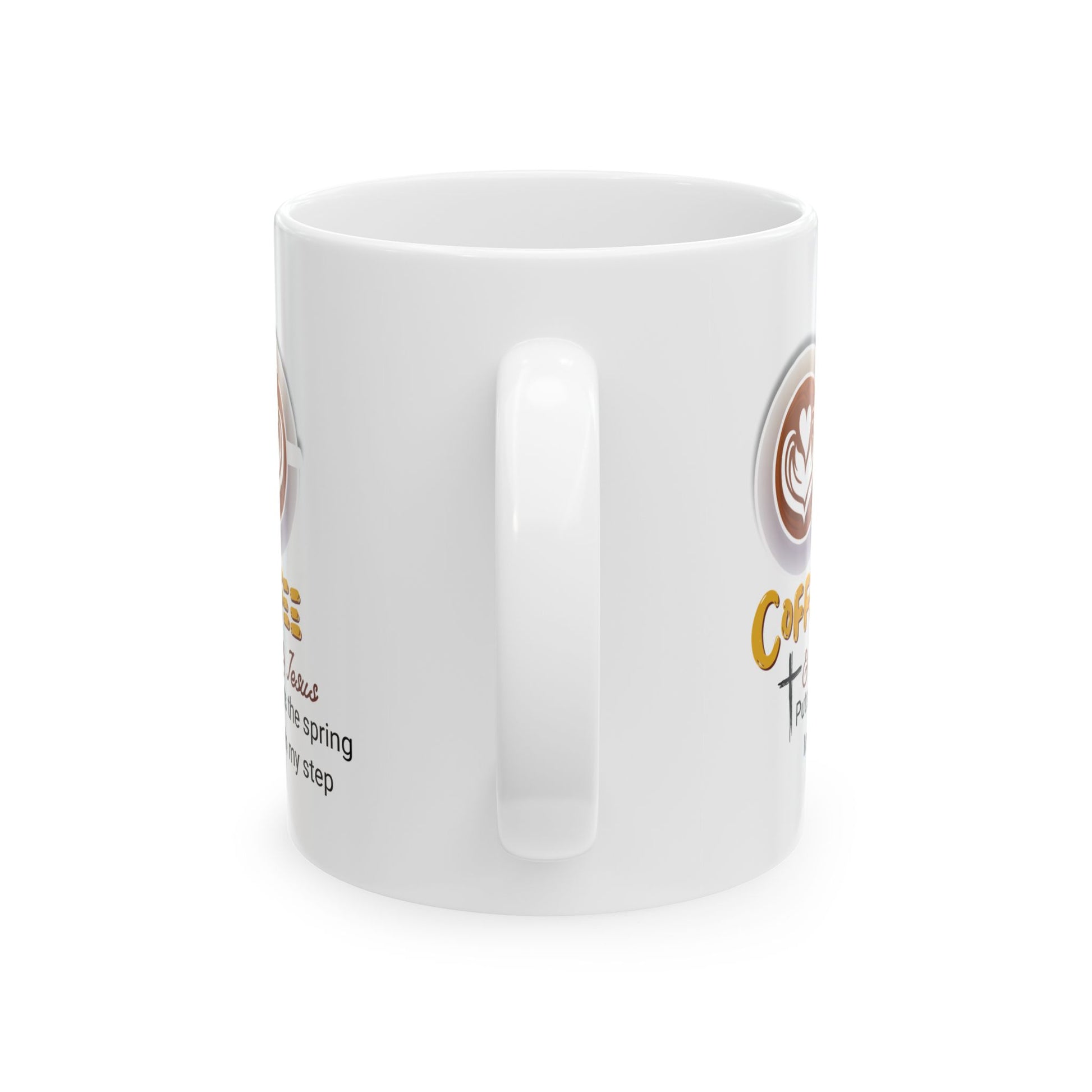 Jesus and Coffee, a day coffee puts a spring in my step Mug — Funny Coffee Quote 11oz & 15oz