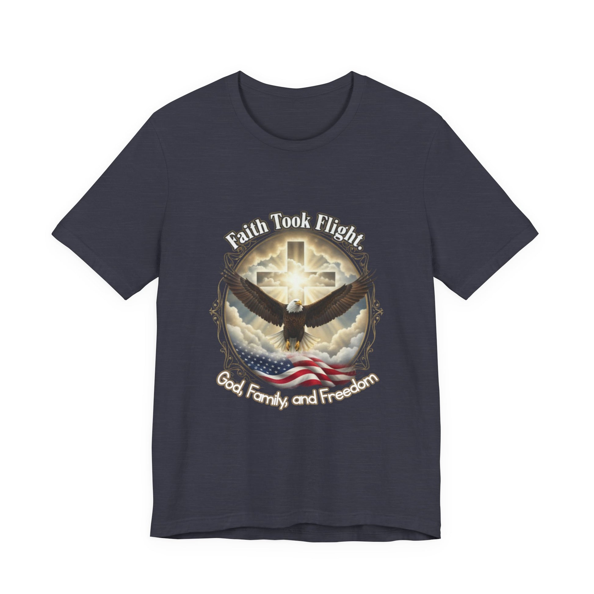 Faith Took Flight Eagle T-Shirt – "God, Family and Freedom" Patriotic Christian Tee