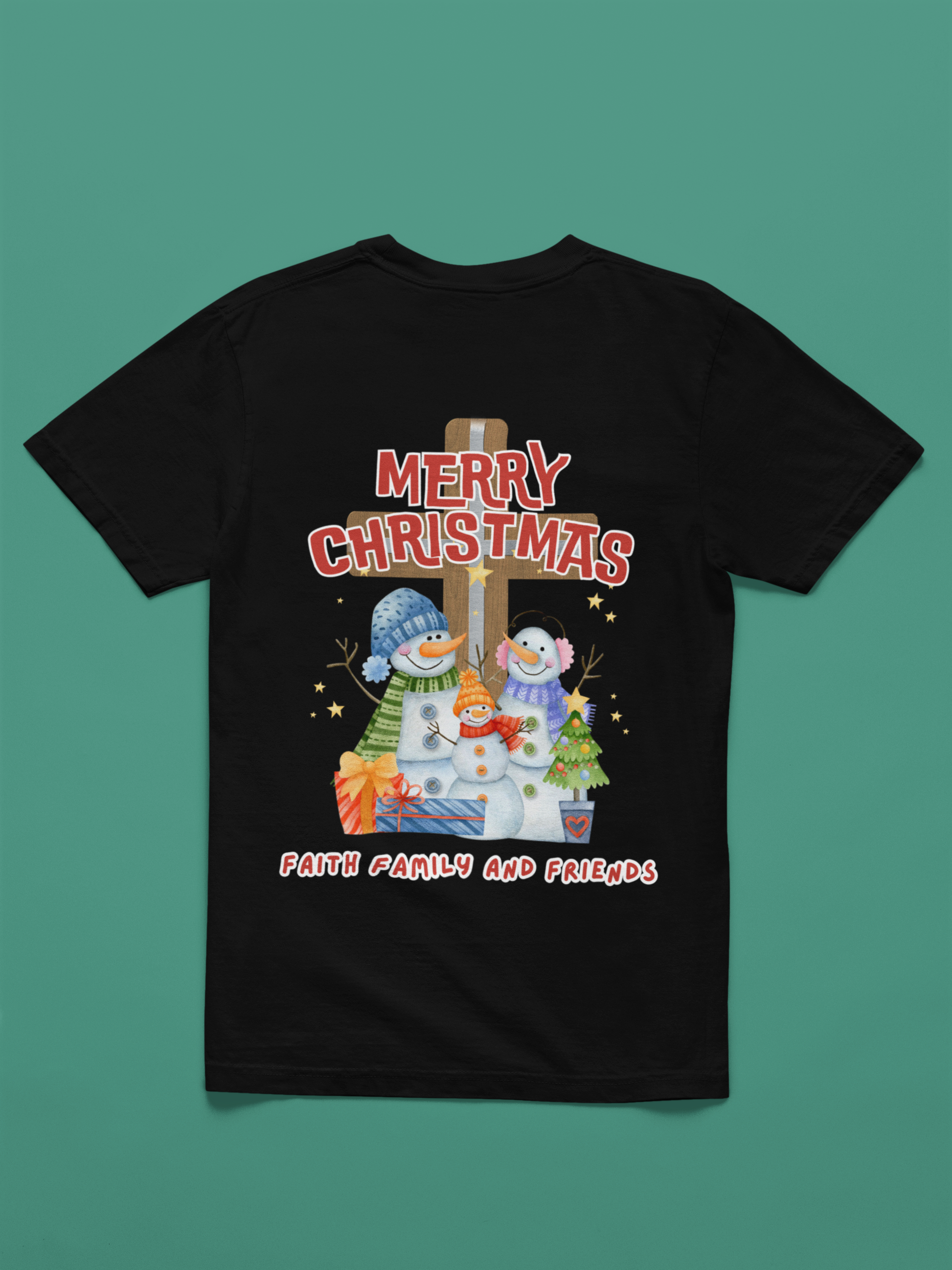Festive Christmas Snowman Faith Family Tee - Merry Christmas Design