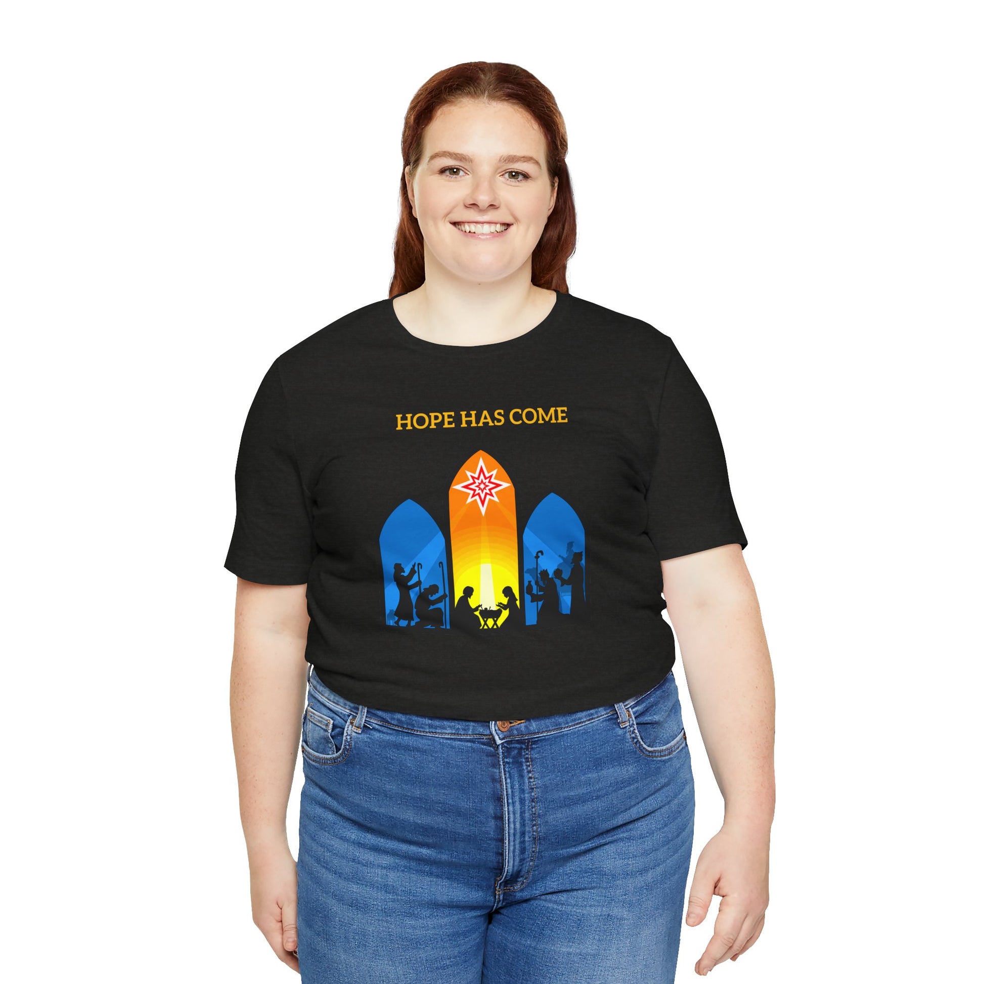 Hope Has Come Unisex Short Sleeve Tee, Inspirational Shirt, Christian Gift, Church Attire, Holiday Apparel, Casual Wear