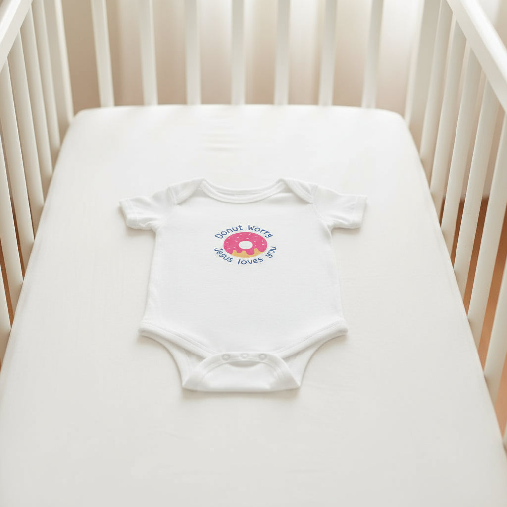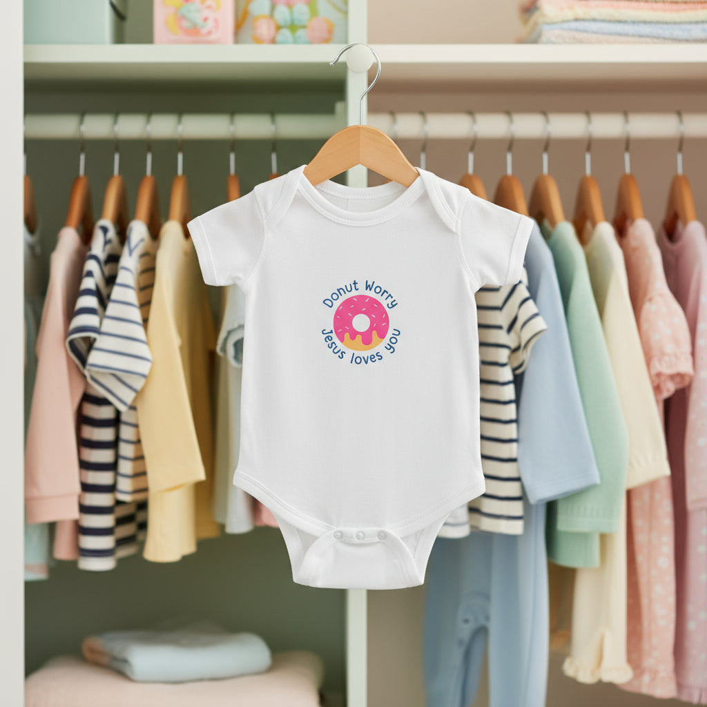 Discover comfort and faith combined with the "Donut Worry Jesus Loves You" baby onesie from RemarkableFaith.net. This adorable onesie features a charming design that brings a joyful message to your little one’s wardrobe. Made with soft, gentle fabric, it ensures all-day comfort for your baby while spreading a message of love and reassurance. Perfect for everyday wear or as a heartfelt gift, this onesie is a sweet reminder that Jesus’ love is always near. Shop now at RemarkableFaith.net and dress your baby in faith and comfort!