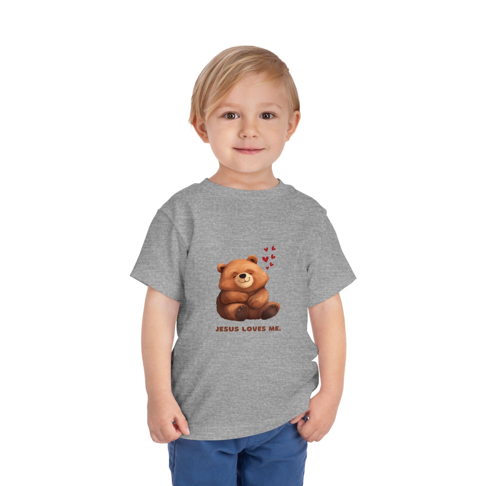 This adorable Toddler Short Sleeve Tee is perfect for your little ones! Featuring a cute bear with the text 'Jesus Loves Me,' this tee radiates warmth and love, making it ideal for playtime, church outings, or family gatherings. Its lightweight fabric ensures comfort throughout the day, while the joyful design brings smiles to everyone around. Perfect for toddlers, this tee makes a delightful gift for birthdays, Easter celebrations, or any occasion when you want to spread positivity. Dress your child in this charming shirt to create memorable moments filled with love and laughter!