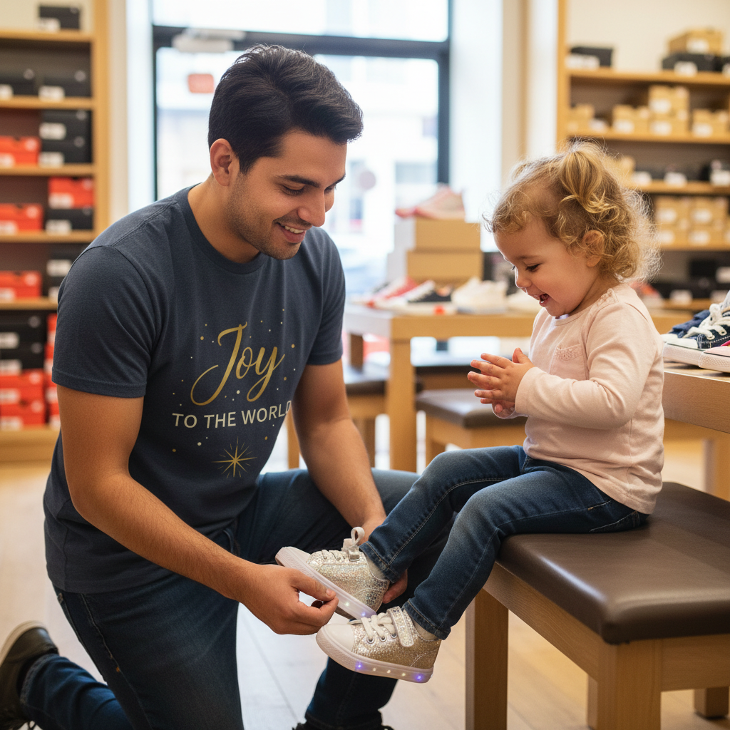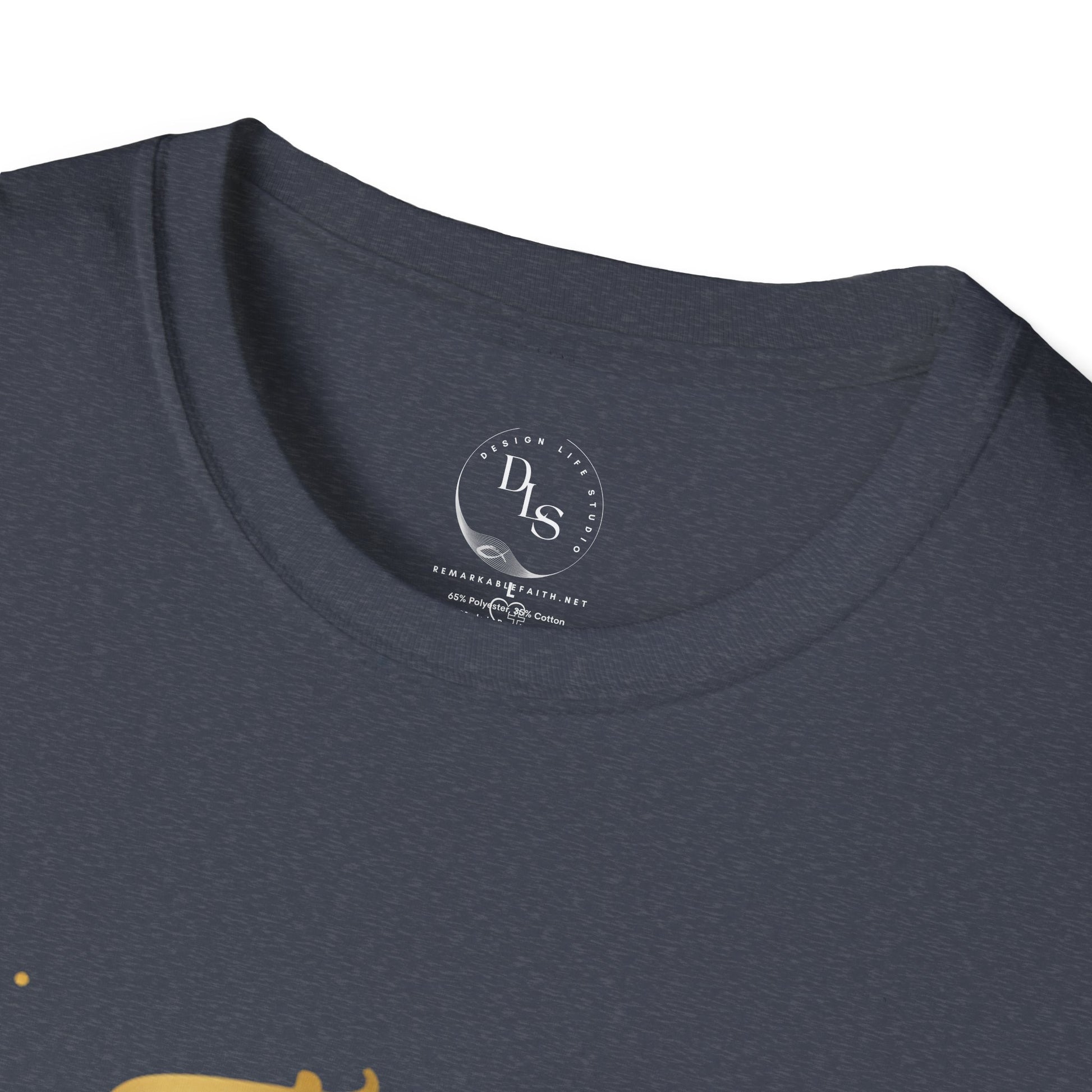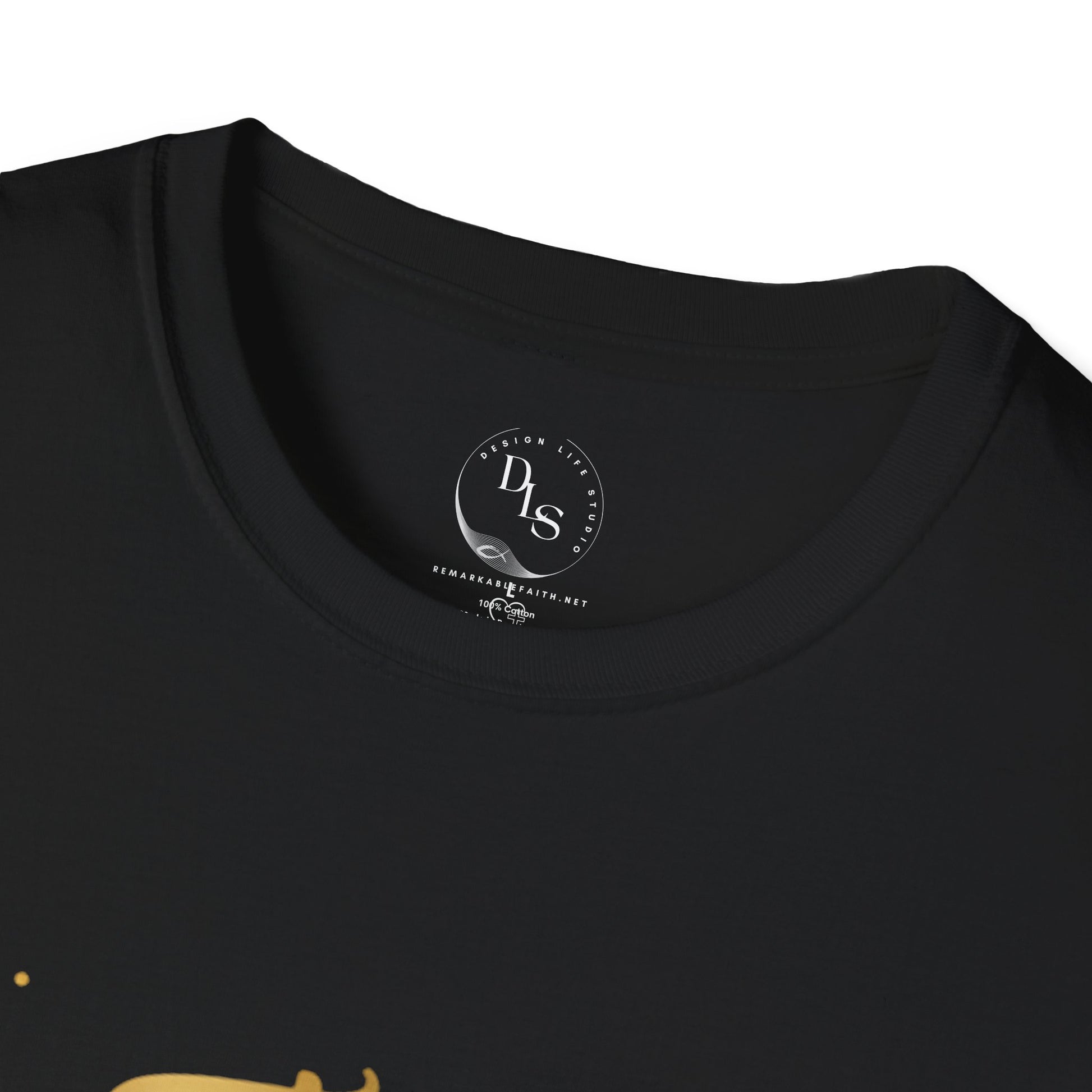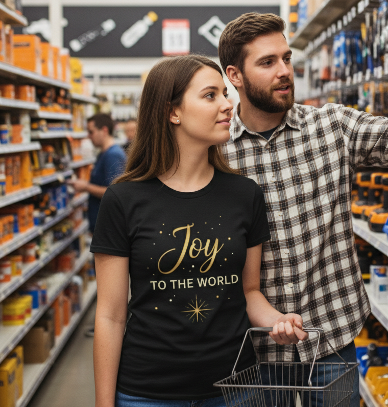 Celebrate quiet evenings and candlelit carols with this soft, year-round tee that carries a warm holiday whisper. The black shirt lets the gold lettering and starburst shine—‘Joy to the World’ reads like a small invitation to gather, slow down, and share a smile. Lightweight and smooth, it layers easily under sweaters or wears alone for a simple, elegant seasonal look. Wear it while stringing lights, singing by the fire, or hosting an intimate holiday dinner—this shirt settles into those familiar moments and adds a subtle, joyful touch.