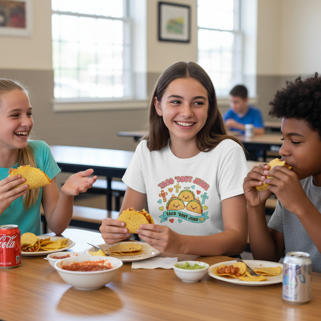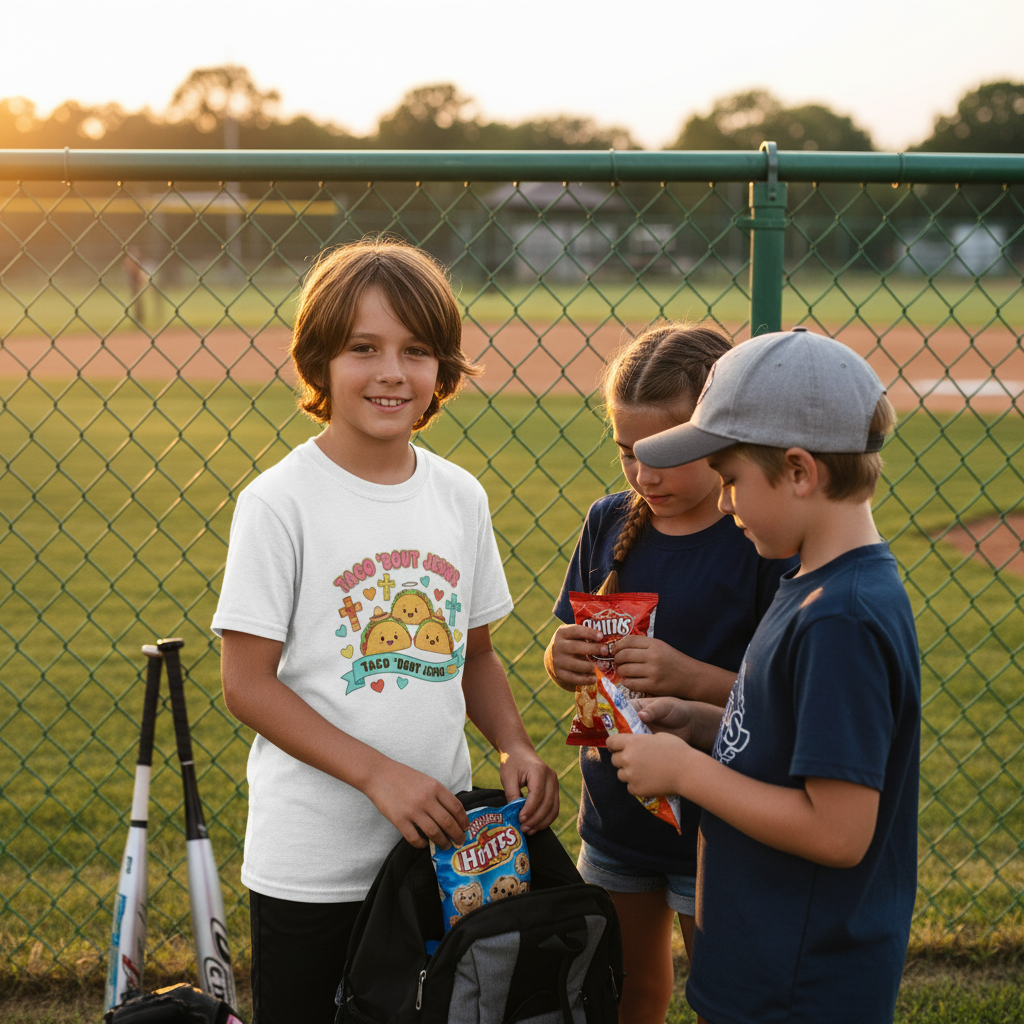 Kids Tee — Cute 'Taco 'Bout Jesus' Christian Taco Graphic Shirt