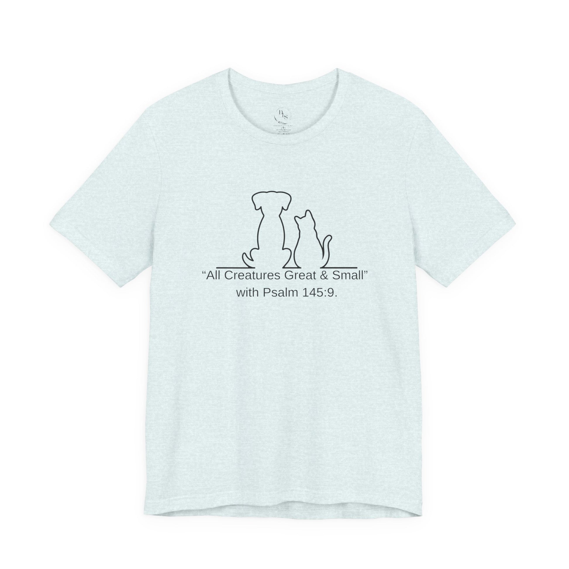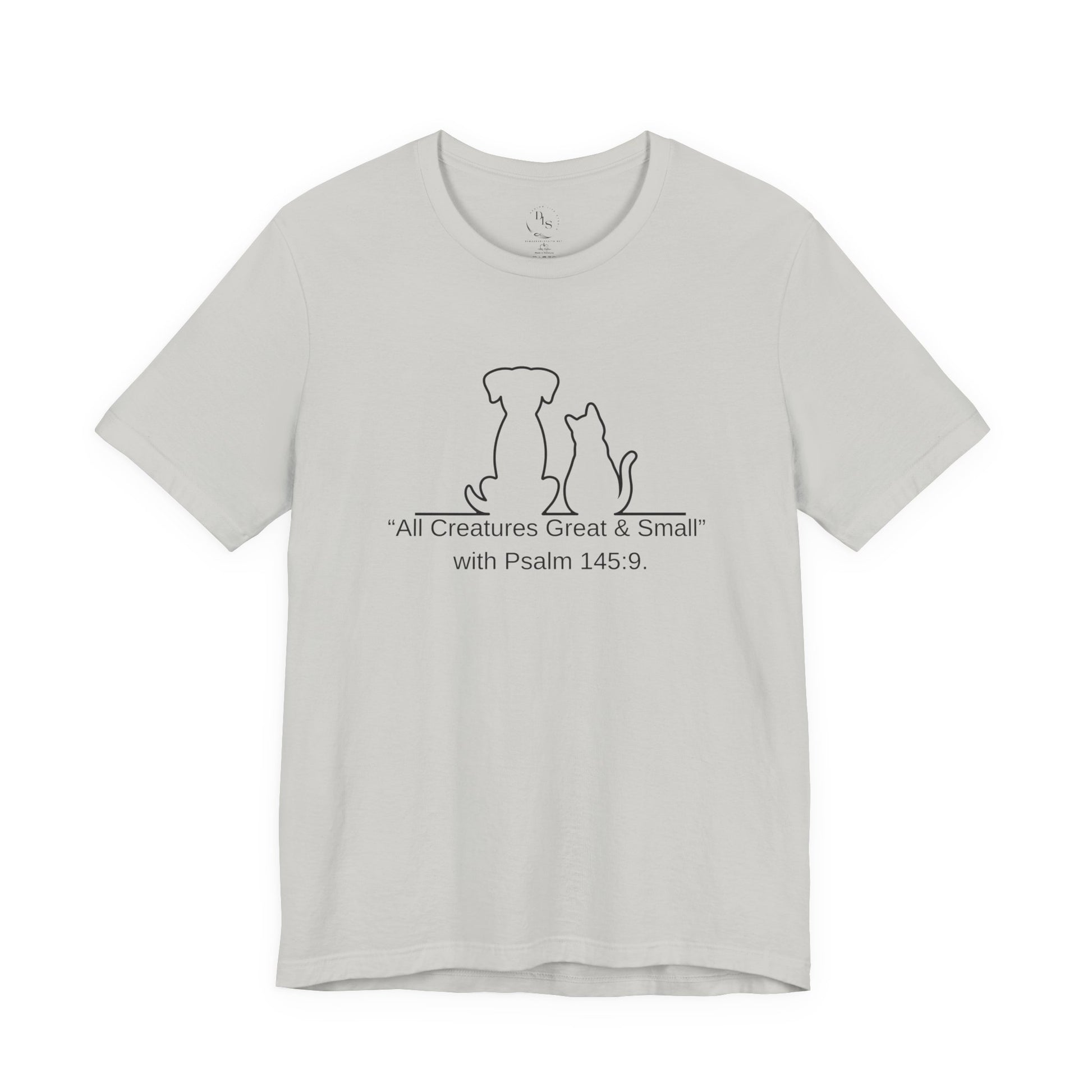 Pets & Faith Unisex Tee - All Creatures Great & Small, Cat & Dog T-Shirt, Animal Lovers Shirt, Bible Verse Tee, Christian Gift