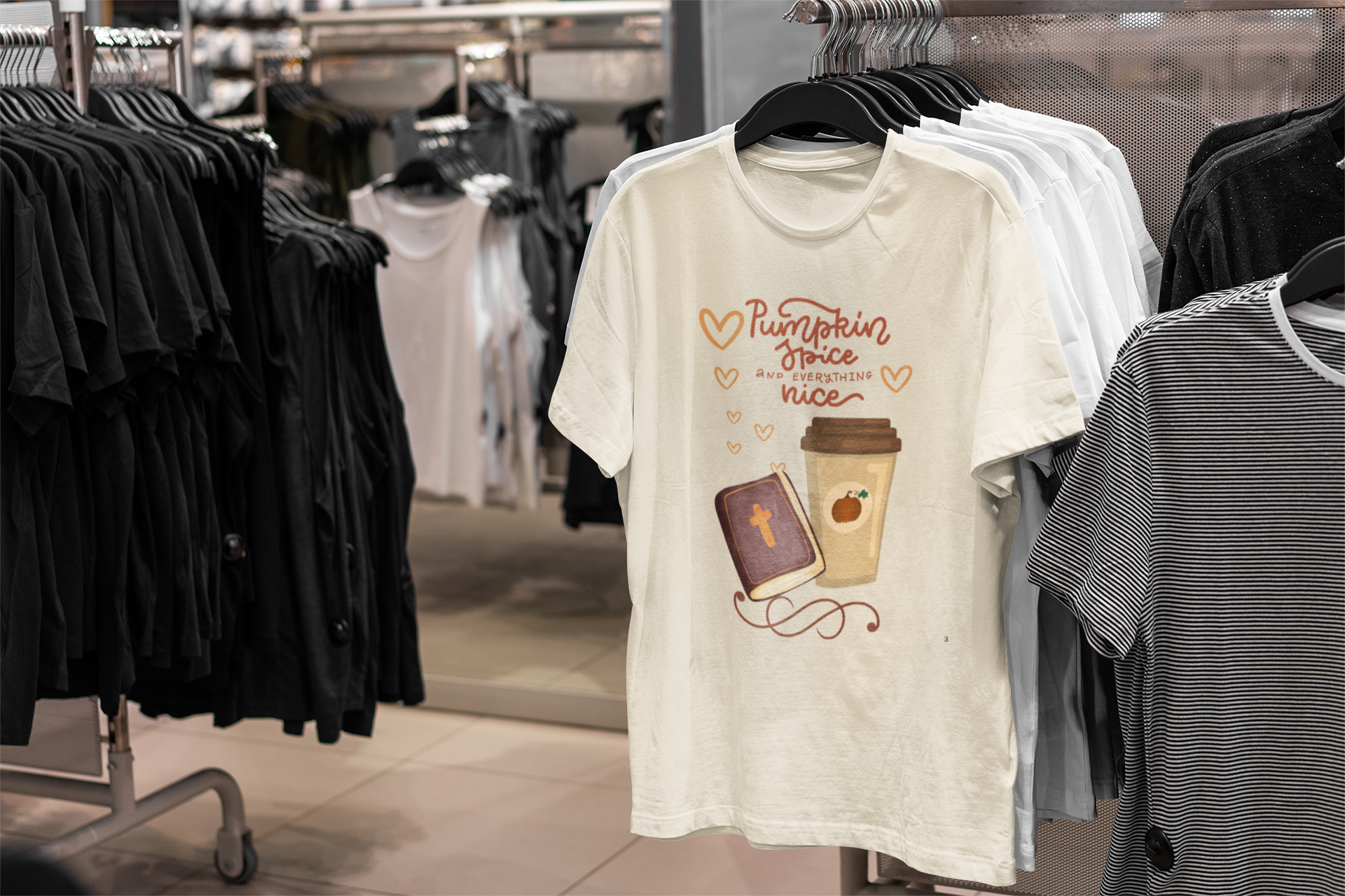 Wrap yourself in warmth and whimsy with our Pumpkin Spice & Everything Nice T-Shirt—a soft, seasonal design that blends fall favorites with faith-rooted charm.