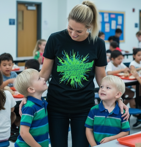 A bold, graphic tee that channels high-energy faith and revival. The neon-green, explosive “RESURRECTION POWER” design pops from the deep black fabric with an electric comic-book flair. Light and smooth to the touch, the shirt wears like a favorite — breathable on warm days, layered under a jacket on cool nights. Wear it to a youth worship night, a church outreach, or when you want to carry an unmistakable declaration of hope with a playful, modern edge. The clean crew neckline and classic fit keep the look simple so the message takes center stage.