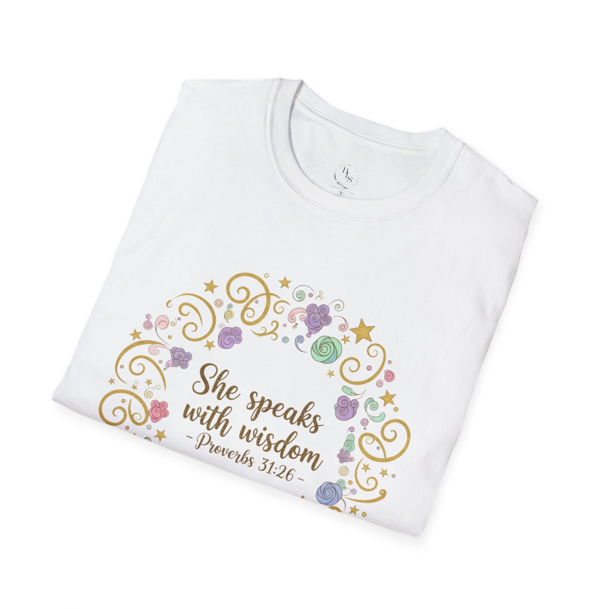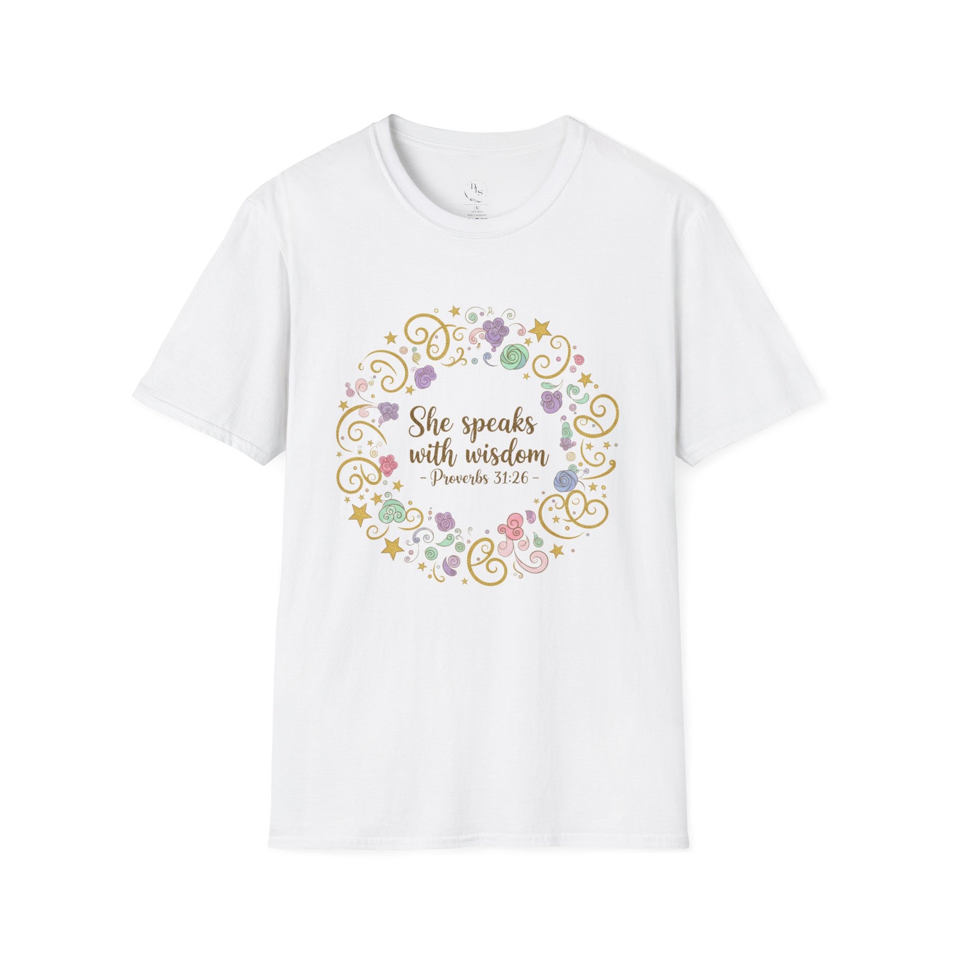 She Speaks with Wisdom Proverbs 31:26 Floral Bible Verse T-Shirt