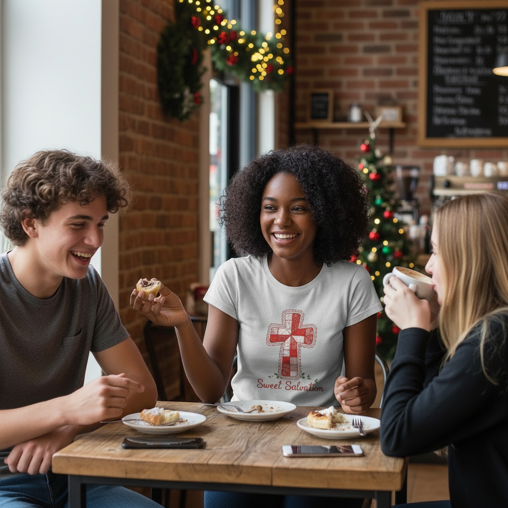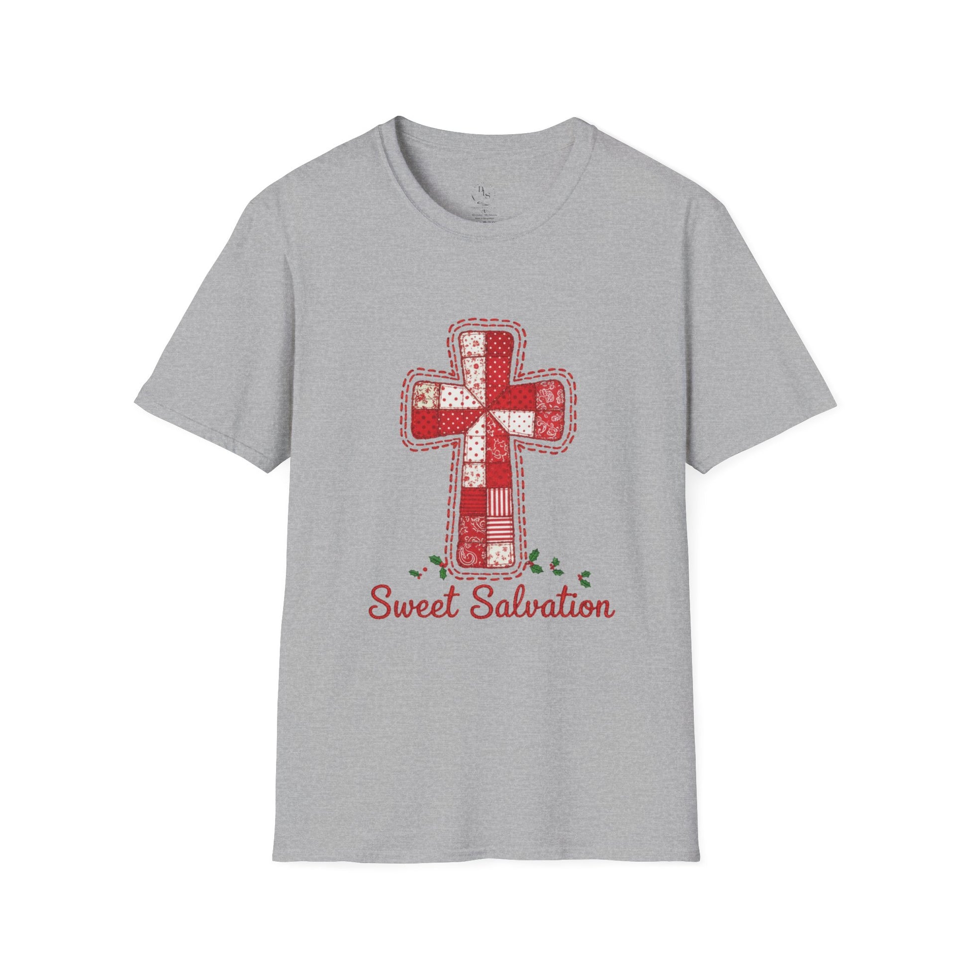 A soft, breathable tee that carries a quiet message — a warm patchwork-style cross sits over the heart with the words “Swenoet Salvation” beneath. The lightweight ring-spun cotton feels gentle against the skin and drapes cleanly in a classic crew-neck silhouette. Subtle stitched details in the design and a slightly vintage red palette give it a handcrafted, homespun look that reads like a comforting hymn on fabric. Wear it to reflect faith, to start conversations, or to add a tender, rustic touch to layered outfits.