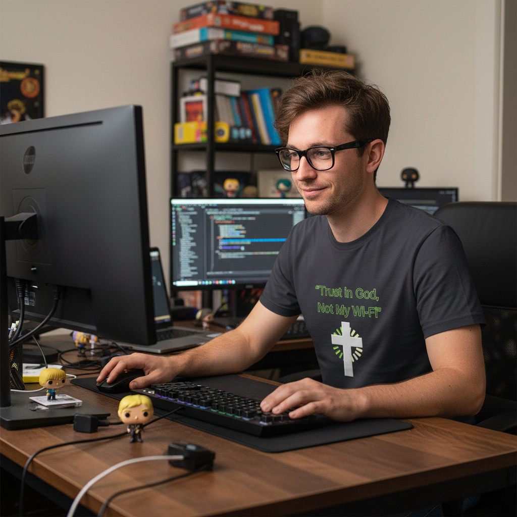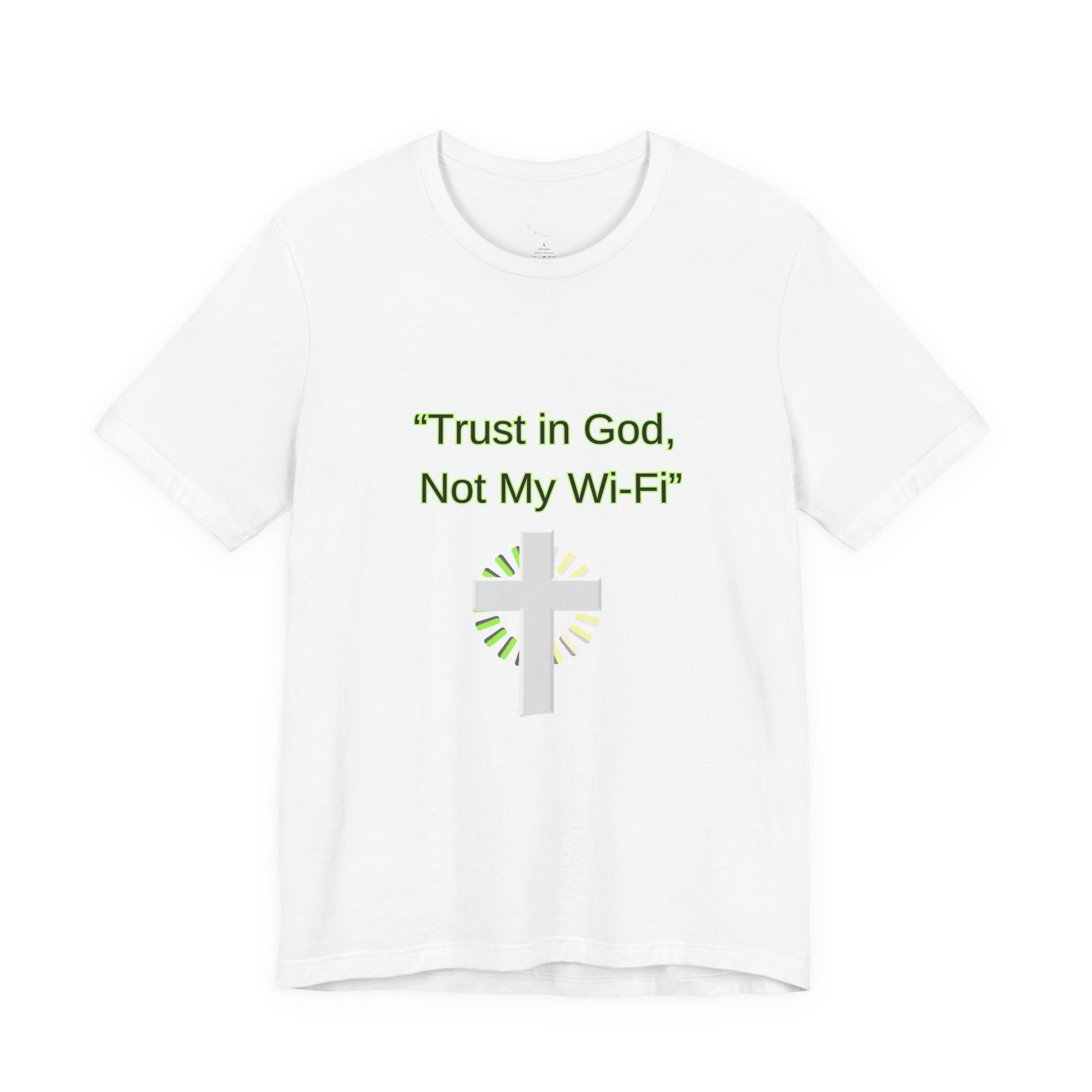 Remarkable Faith’s Unisex Jersey Short Sleeve Tee combines comfort with a powerful message: "Trust in God, not my Wifi." Designed for those who prioritize faith above all, this tee serves as a reminder to place trust in what truly matters. Crafted with soft, high-quality fabric, it’s perfect for everyday wear, inspiring confidence and positivity wherever you go.