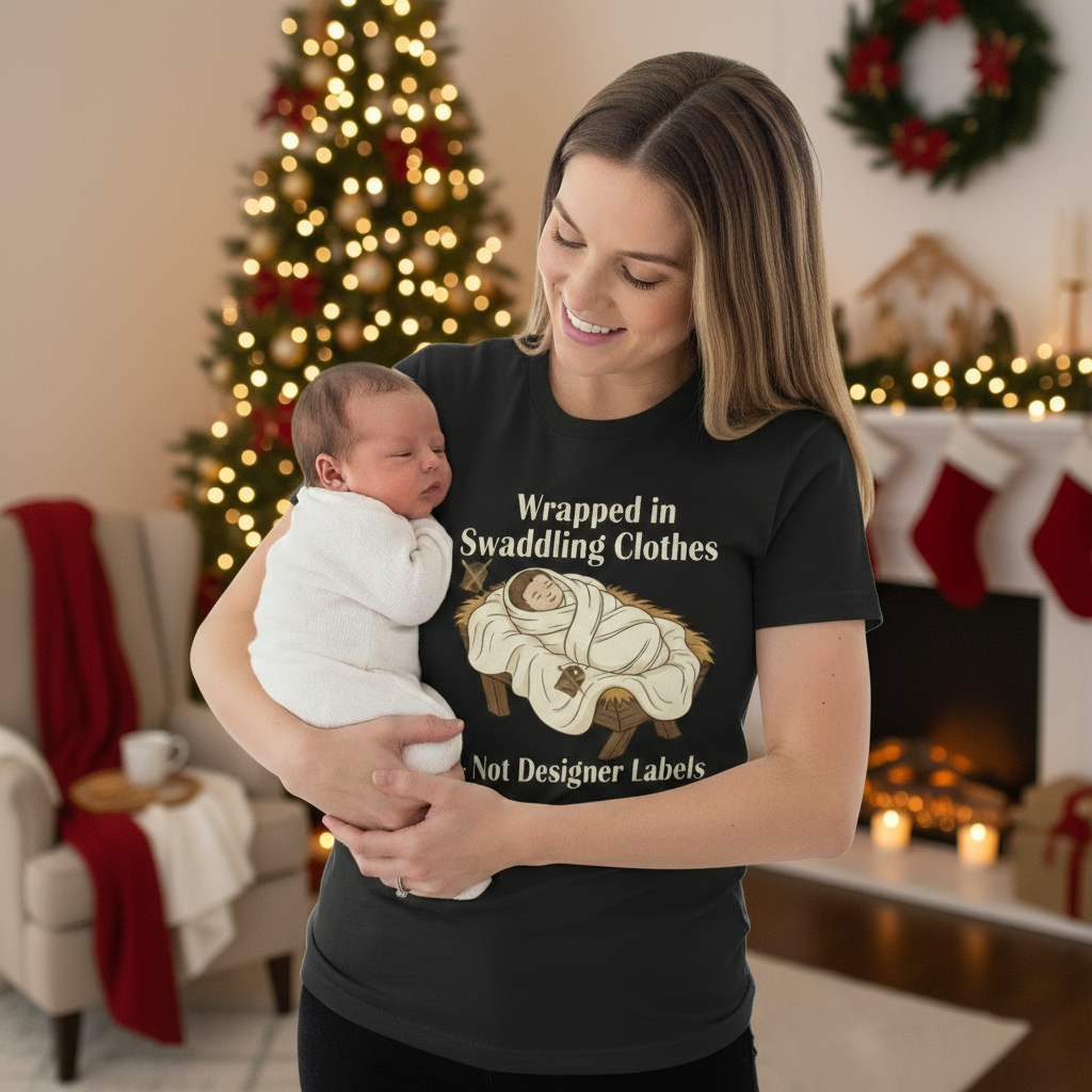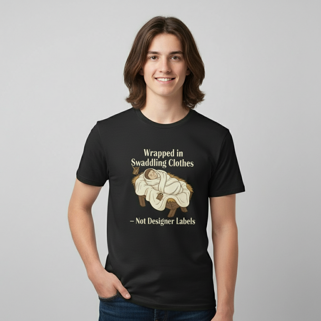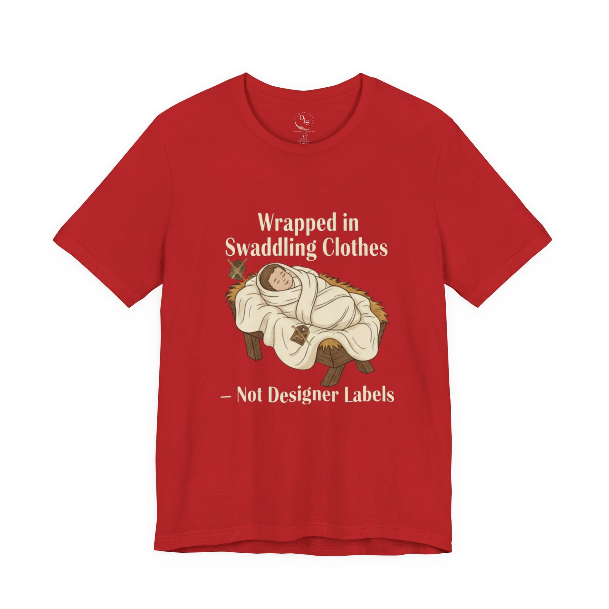 Remarkable Faith’s Unisex Jersey Short Sleeve Tee beautifully captures the humble and profound message, “Wrapped in swaddling cloth, not designer clothes.” Crafted for comfort and style, this tee serves as a meaningful reminder of simplicity, faith, and grace. Perfect for those who appreciate thoughtful apparel that inspires and uplifts everyday wear.The Bella Canvas 3001 is a classic unisex jersey short sleeve tee that fits like a well-loved favorite. Soft cotton and quality print make users fall in love with it over and over again. These t-shirts have ribbed knit collars to bolster shaping. The shoulders are tapered for a better fit over time, and dual side seams hold the garment's shape for longer.
