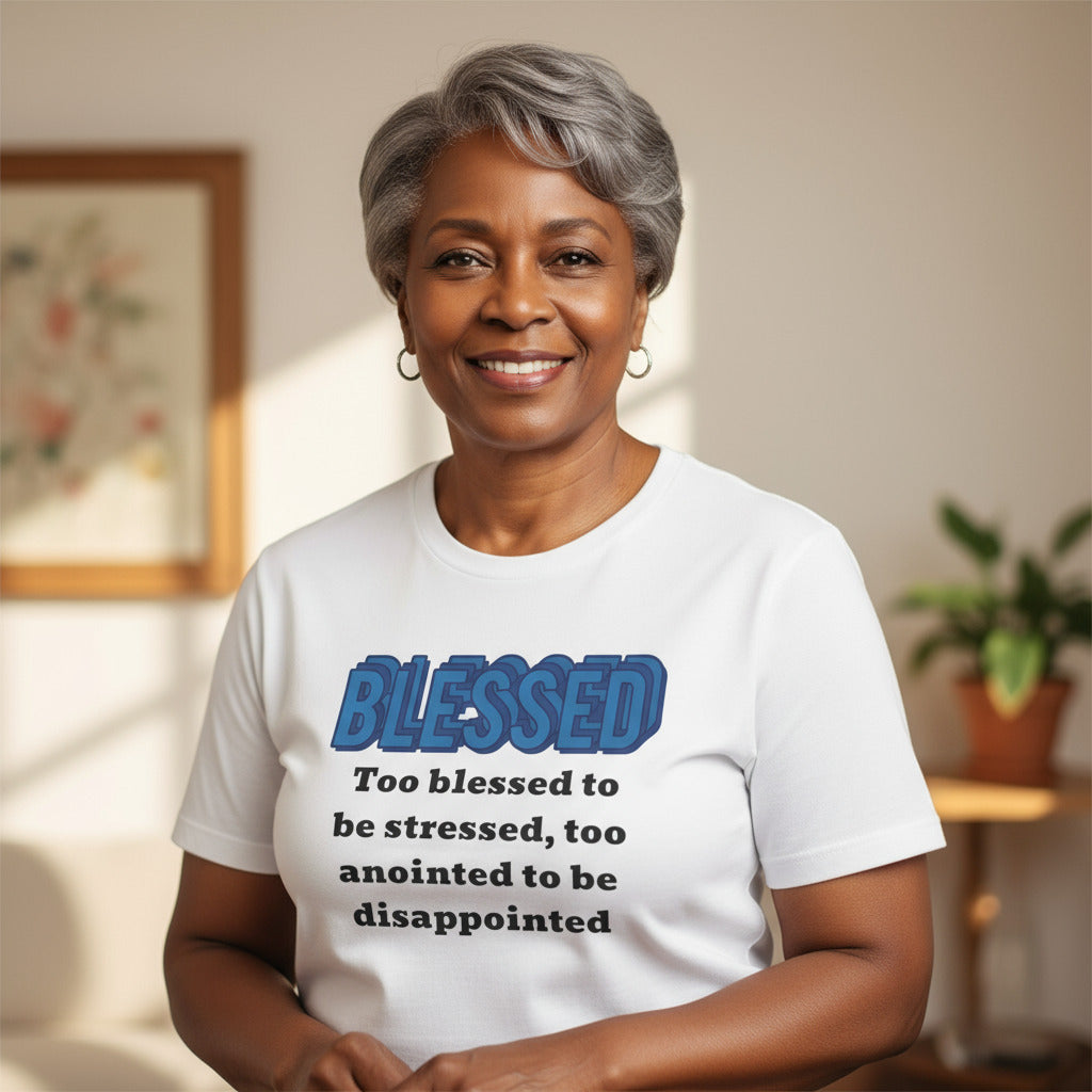 Discover inspiration and style with Remarkablefaith.net’s signature Blessed T-Shirt collection. Featuring empowering messages like "Blessed," "Too blessed to be stressed," and "Too anointed to be disappointed," these tees are designed to uplift your spirit while keeping you comfortable. Perfect for everyday wear or as a thoughtful gift, each shirt is a reminder to embrace positivity and faith in every moment. Wear your blessings proudly with Remarkablefaith.net.