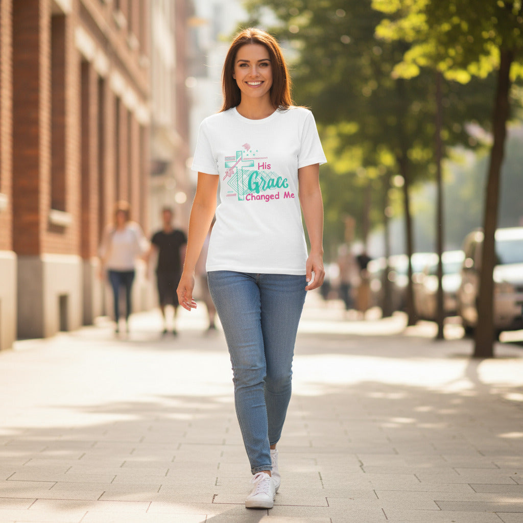 Discover the inspiring "His Grace Changed Me" T-shirt from Remarkablefaith.net, a perfect blend of faith and fashion. Crafted for comfort and style, this T-shirt boldly proclaims the transformative power of grace, making it an ideal choice for anyone looking to express their spiritual journey. Made with quality materials, it offers a soft, comfortable fit suitable for everyday wear. Wear your faith with pride and let your story inspire others wherever you go. Experience the remarkable difference with Remarkablefaith.net today!