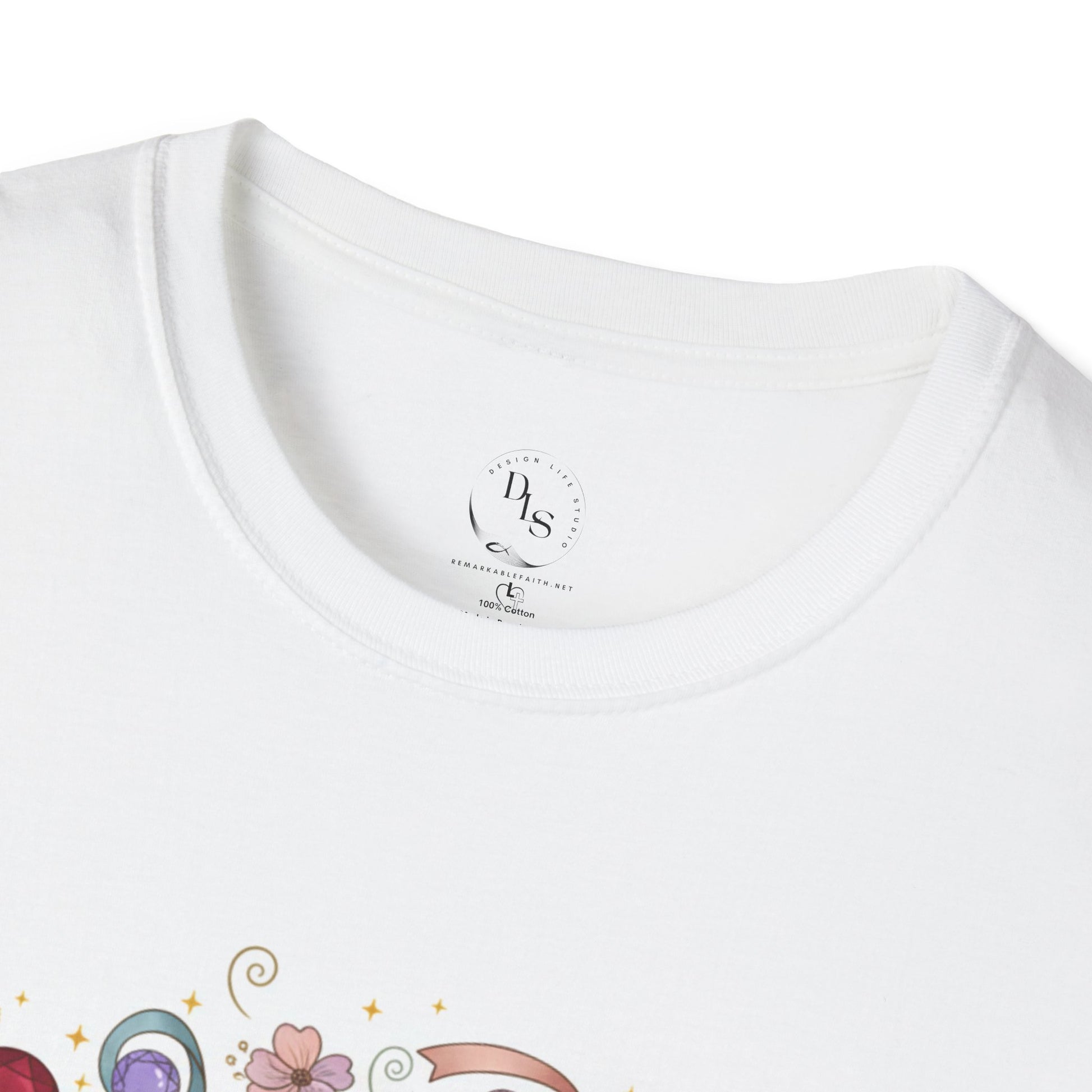 Lightweight and soft, this crew-neck tee carries a hand-drawn, floral-wreath design that reads like a small, personal reminder. Gentle pastels and tiny stitched details give it a handcrafted, cottagecore feel — something to reach for on slow mornings, Sunday markets, or casual meet-ups with friends. The breathable cotton feels familiar against the skin; the clean silhouette layers easily under a cardigan or stands alone with jeans. It’s meant for people who appreciate quiet, thoughtful art on everyday wear and want clothing that feels lived-in from the first day.