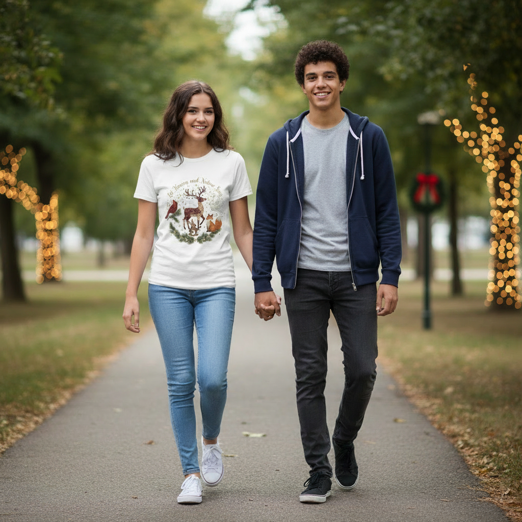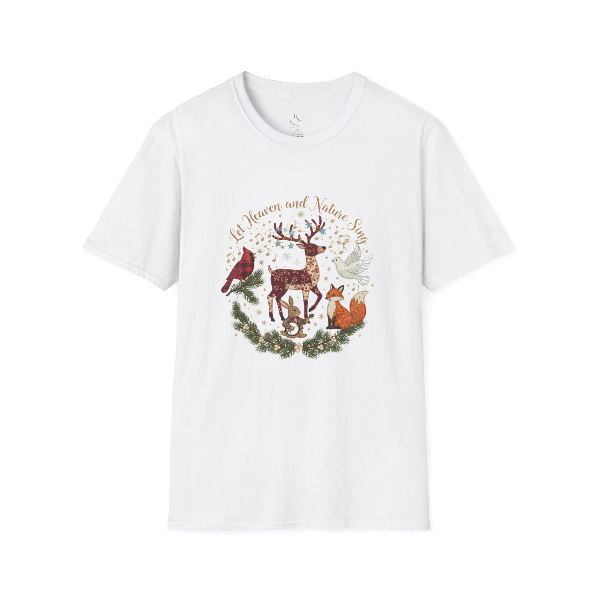Woodland Christmas Tee — 'Believe in Heaven and Nature Again' Deer & Forest Animals T-Shirt