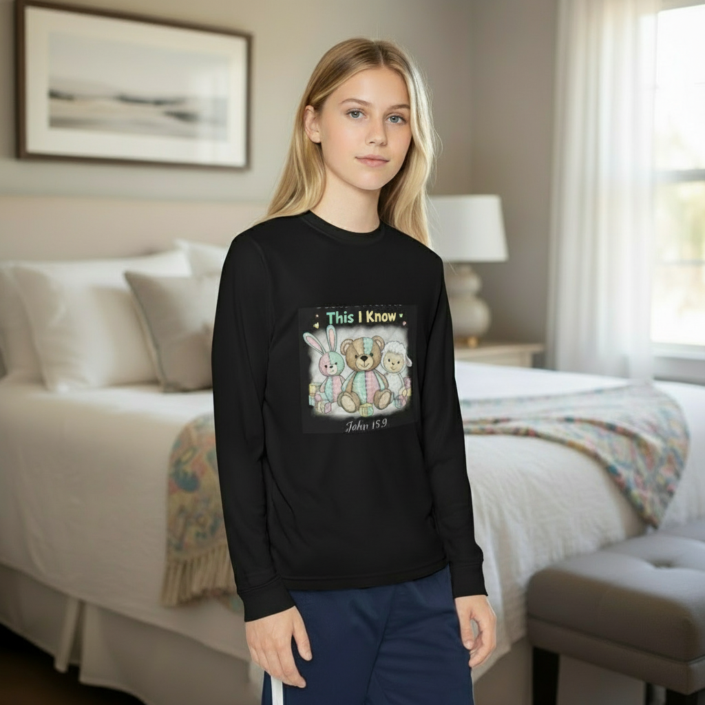 Remarkable Faith’s “This I Know” Unisex Jersey Long Sleeve Tee is a meaningful and engaging t-shirt designed for children. Featuring the inspiring scripture reference, “I know that Jesus loves me,” this tee encourages thoughtful reflection while offering comfortable, high-quality wear. Perfect for young believers, it combines faith and style in a way that sparks curiosity and affirmation.